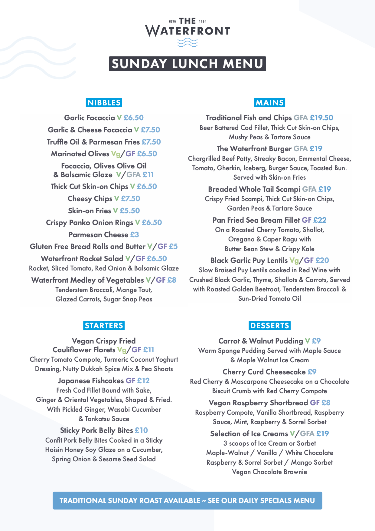Some of our food contains allergens, Please speak to a member of staff for more information.