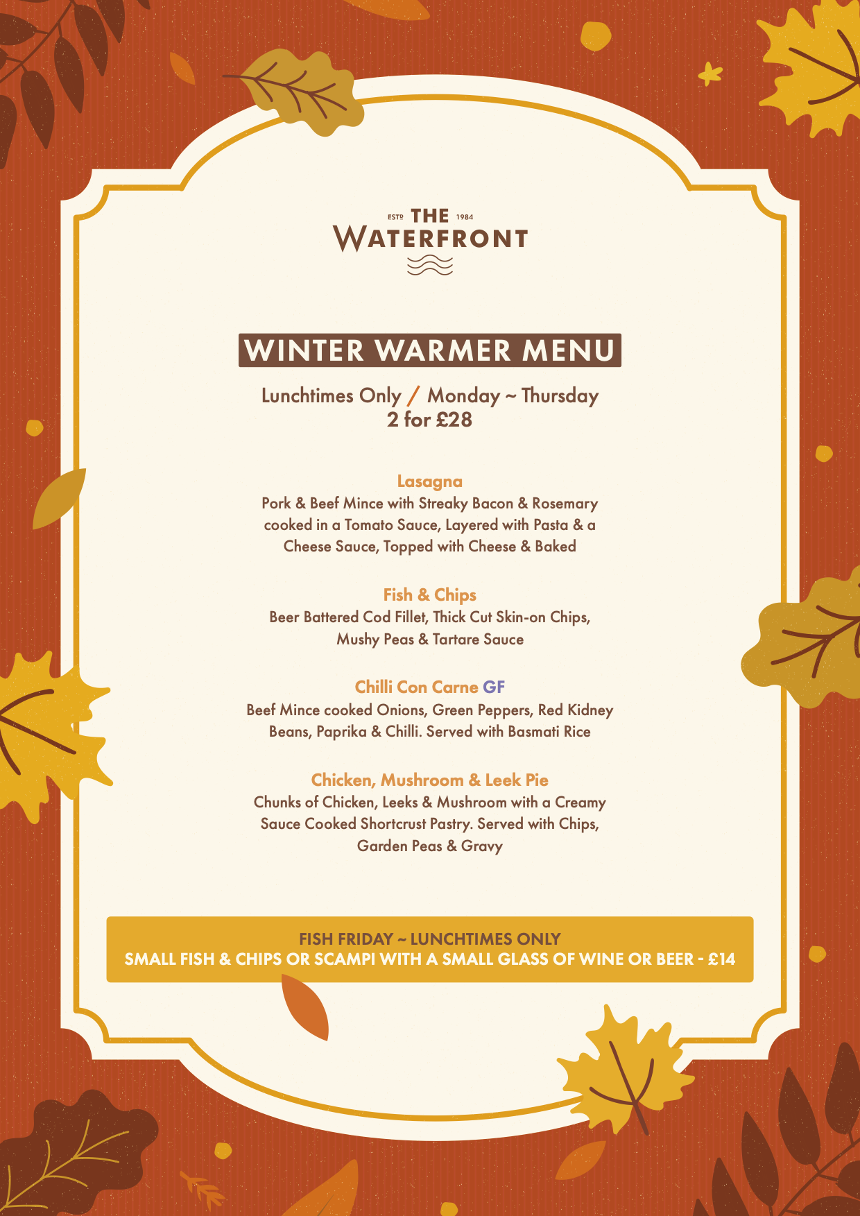 KITCHEN CLOSED ON TUESDAYS (Bar snacks available)